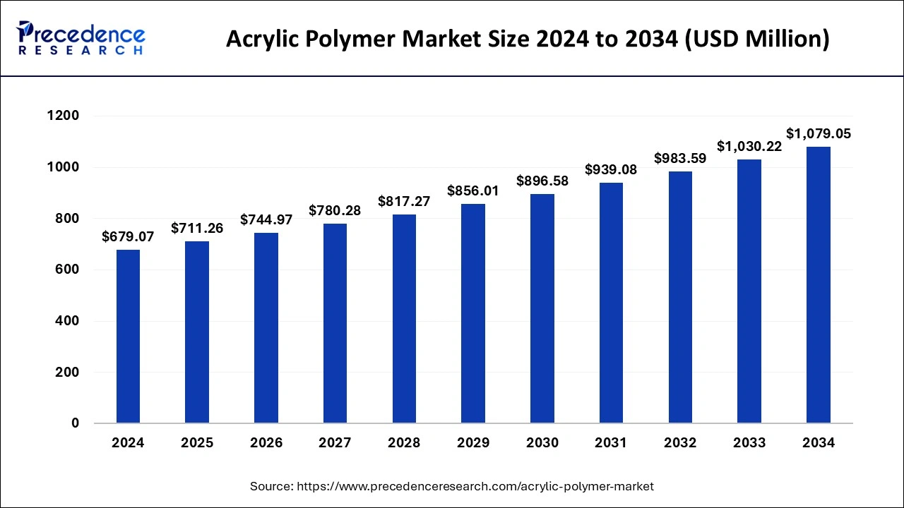 - The global acrylic polymer market was valued at USD 679.07 million in 2024.