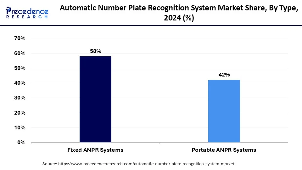 - By type, the fixed ANPR systems segment contributed the highest market share of 58% in 2024.