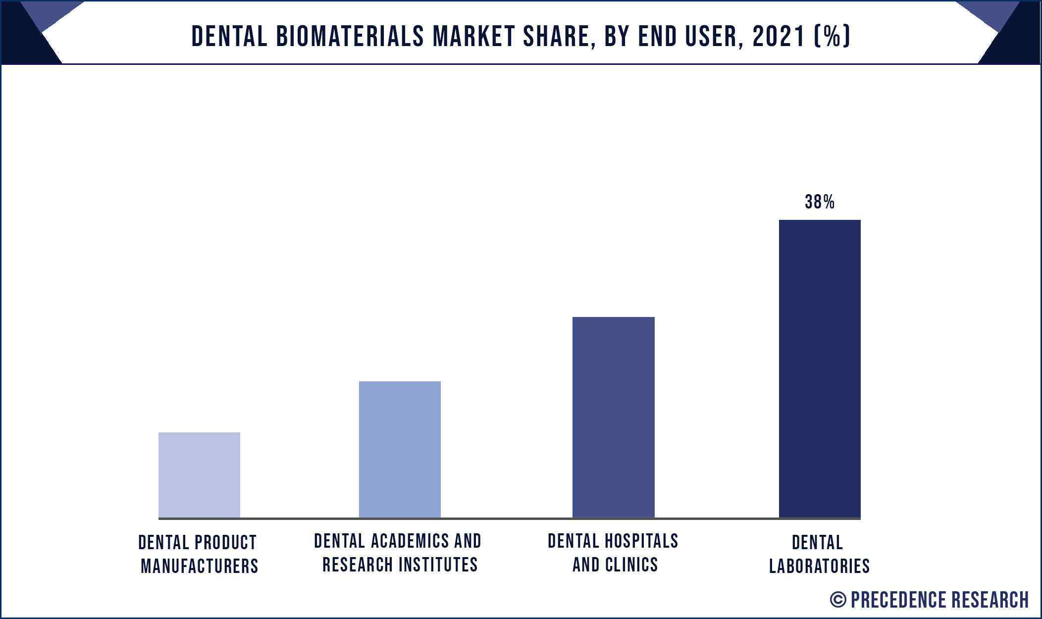 The dental laboratories segment dominated the dental biomaterials market in 38% in 2024. The factors such as growing disorders and infections regarding teeth, growing consumer awareness regarding oral hygiene and health, and growing demand for dental implants and surgeries are driving the growth of dental biomaterials for dental laboratories. In addition, the growth of global dental biomaterials market is also attributed due to growing research and development activities all around the globe.