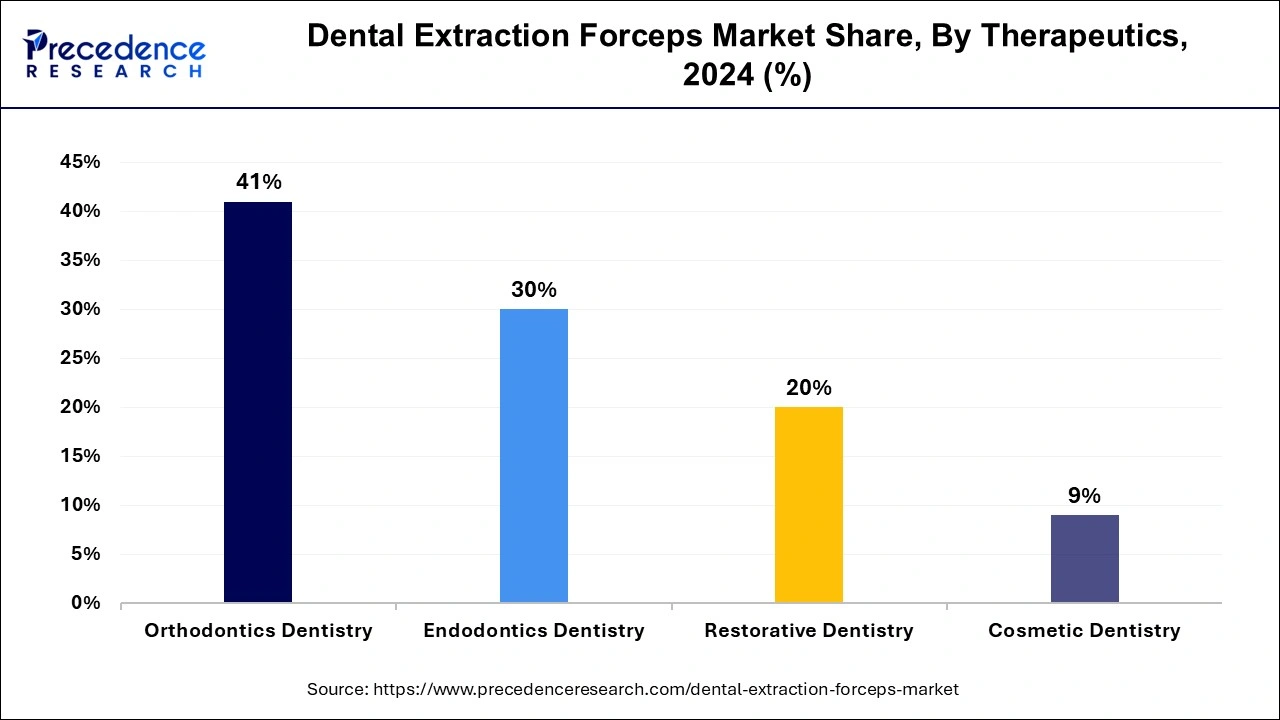 The orthodontics dentistry segment dominated the dental extraction forceps market in 2024 and is expected to continue its dominance over the forecast period. Orthodontics is a special branch of dental practice as it specializes in the process of detecting, preventing, and correcting the position of teeth that are misaligned and helps in improving oral health. Also, it helps correct the gums that are wrongly positioned. The presence of a large population with this problem and the rising attention of individuals towards straightening and fixing the position of wrong teeth also increases the growth of the dental extraction forceps market.
