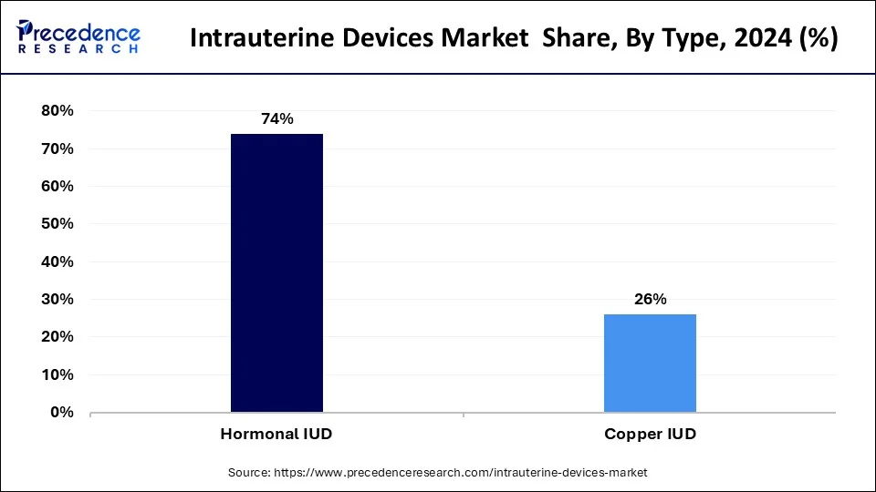 - By type, the hormonal IUD segment generated the highest market share of 74% in 2024.