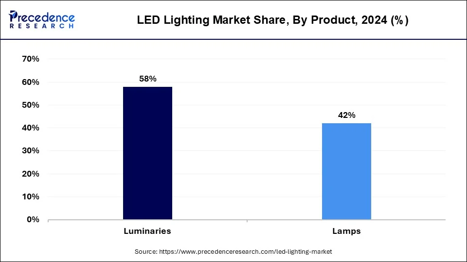 - By product, the luminaries segment registered a maximum market share of 58% in 2024.