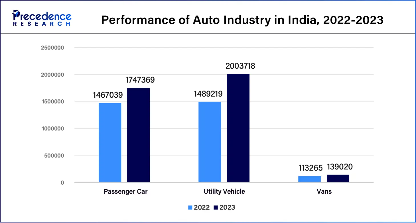 - According to the Society of Indian Automobile Manufacturers, total Passenger Vehicle Sales increased from 30,69,523 to 38,90,114 units. Sales of passenger cars also increased from 14,67,039 to 17,47,376, utility vehicles from 14,89,219 to 20,03,718, and vans from 1,13,265 to 1,39,020 units in FY-2022-23, compared to the previous year.