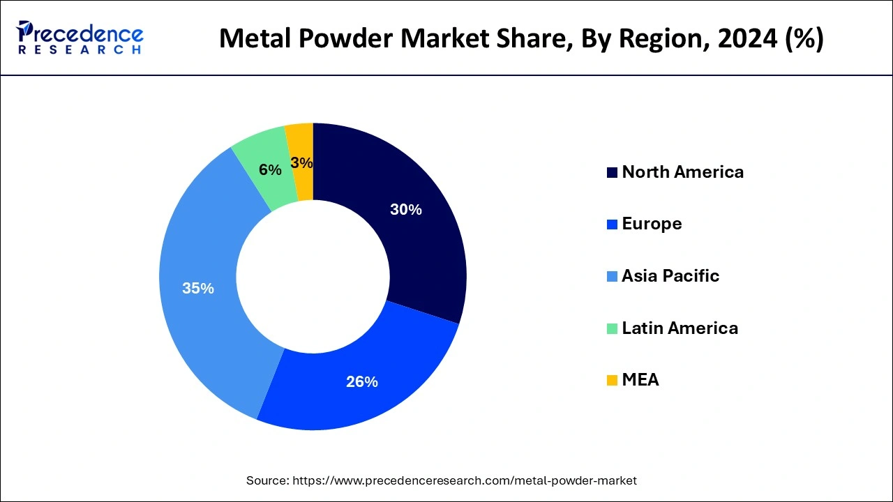 This research report covers crucial trends and projections of metal powder products across diverse geographical regions such as North America, Europe, Asia-Pacific, Latin America, and the Middle East and Africa. Asia Pacific led the global metal powder market in 2024 with a substantial market share. This growth is credited to the intensification in population, an upsurge in disposable income, and development in spending in the electrical & electronics sector. India, China, and Japan are key contributors to the metal powder market in this region.