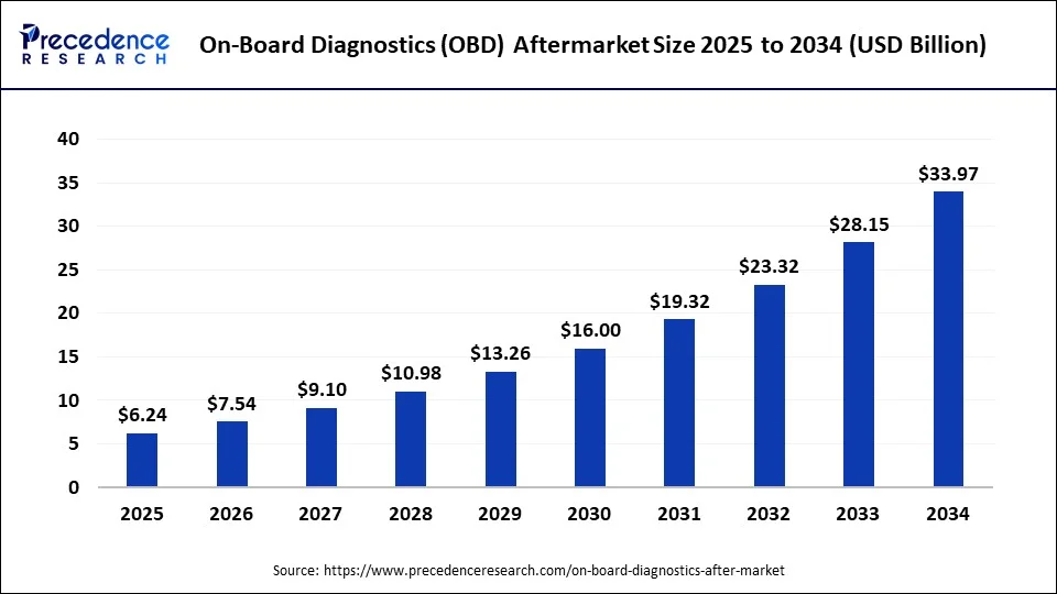 The global on-board diagnostics (OBD) aftermarket was valued at USD 5.17 billion in 2024 and is anticipated to reach around USD 33.97 billion by 2034, expanding at a CAGR of 20.71% over the forecast period from 2025 to 2034.