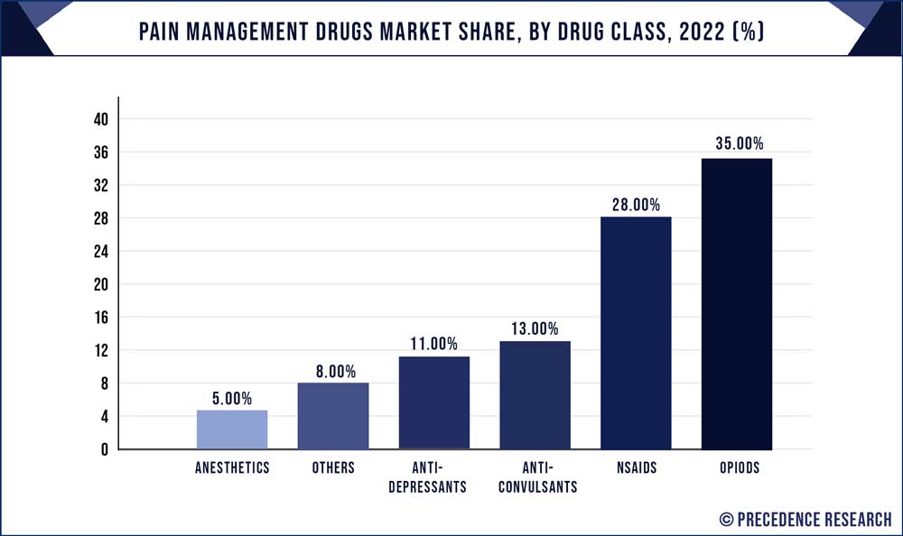 The rise in concerns regarding drug misuse and patent expiration of pain medication drugs are expected to obstruct the growth of the pain management drugs market. Opioids are used widely for pain relief, but it has a significant concern linked with abuse, addiction, and the deadly repercussions of diversion. Concerns about addiction appear to have contributed to the undertreatment of conditions typically believed appropriate for opioid therapy, such as cancer pain, end-of-life pain, and acute pain. According to the National Library of Medicine, three million US citizens and 16 million individuals worldwide are addicted to opioids and are suffering from opioid use disorder.