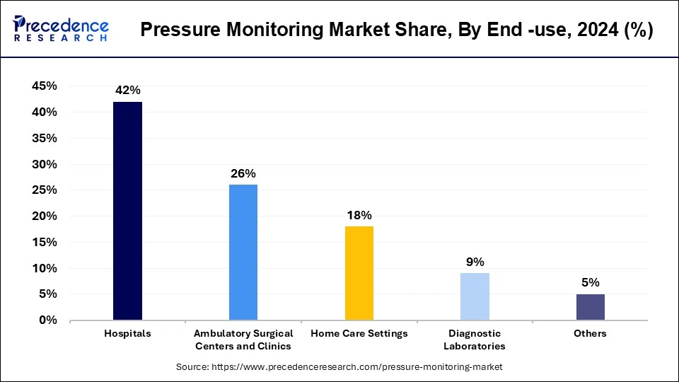 The cardiac disorders segment dominated the pressure monitoring market in 2024. This is due to the rising aging populations and increasing incidence of cardiovascular disorders among elderly populations. Also, enhanced healthcare infrastructure and ongoing government initiatives further boost market growth.