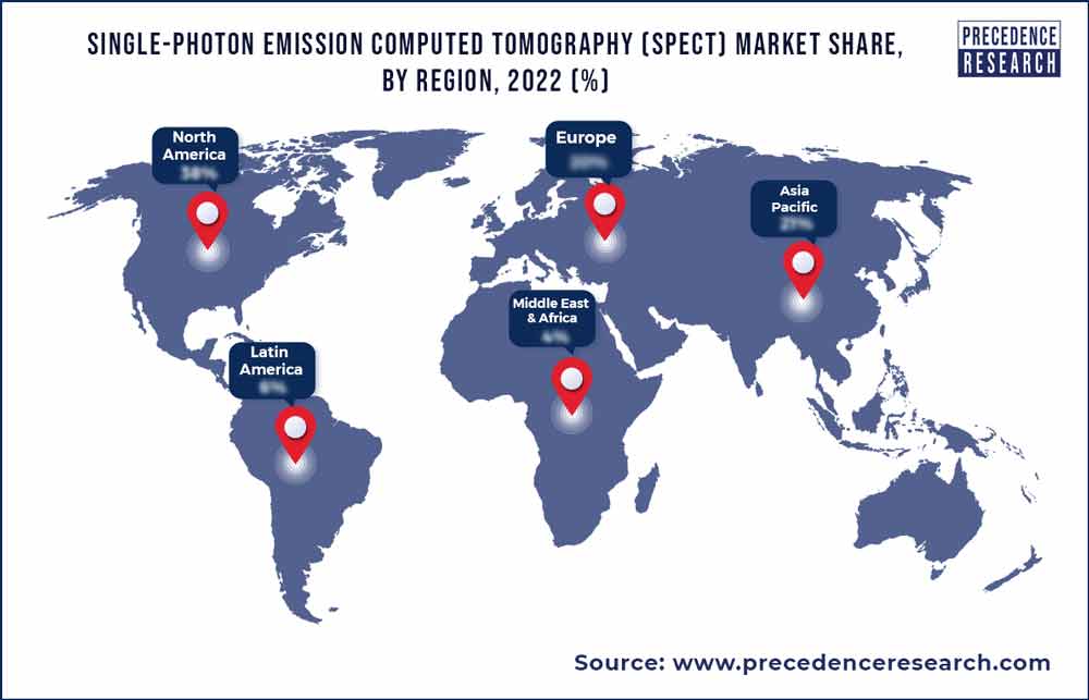 North America dominates the global market. The rapidadoption of advanced imaging technology by the healthcare sector in North America is considered a major driving factor for the growth of the market. The growth of the SPECT market in the region is driven by the growing number of discoveries of new radiopharmaceutical devices for computed imaging. Increasing cases of cancer and cardiovascular disorders in recent years have boosted the demand for effective molecular imaging SPECT scanners. The U.S. and Canada are considered as largest contributors to the growth of market owing to the presence of well-established healthcare as well as radiopharmaceutical industries. Europe acquires a significant revenue share of the single-photon emission computed tomography market. Growing investment in advanced diagnostic centers in the region is propelling the growth of the market.
