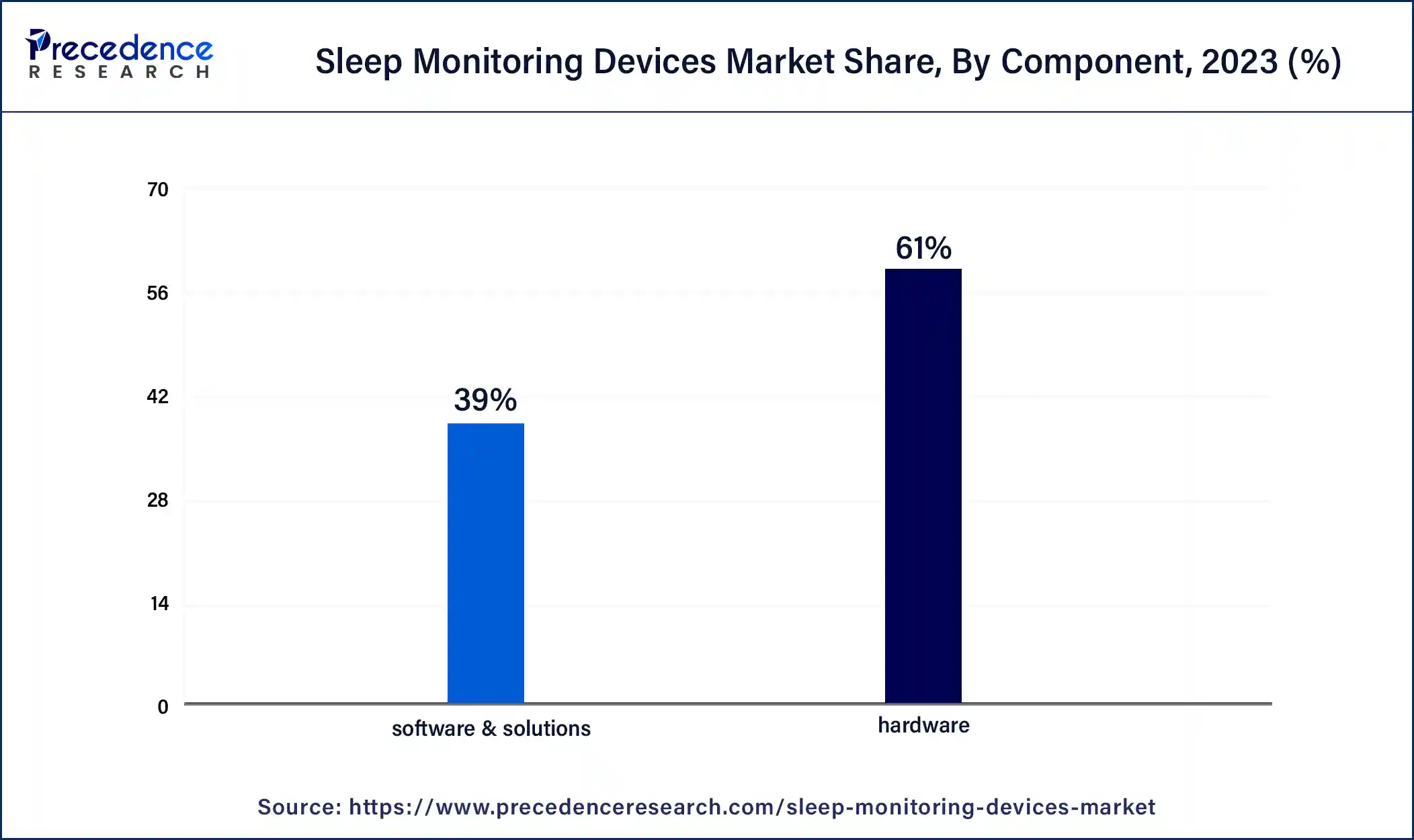 In 2023, the hardware segment had the highest market share of 61% on the basis of the component. In the sleep monitoring devices market, the hardware segment encompasses the physical components of monitoring devices, including sensors, wearables, and processing units. Hardware trends focus on miniaturization for increased wearability, improved sensor accuracy for precise data collection, and extended battery life for uninterrupted monitoring.