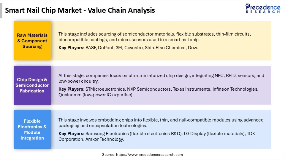 Among the most significant technological advancements in the smart nail chip market is the development of ultra-miniaturized electronics that function efficiently within extremely limited physical space. Progress in flexible electronics and thin-film semiconductor technologies enables chips to conform to the natural curvature of nails while maintaining comfort. The integration of passive and low-power components, such as NFC, RFID, and energy-harvesting systems, eliminates the need for onboard batteries. Additionally, improvements in biocompatible coatings, encapsulation materials, and efficient wireless communication protocols are enhancing safety, durability, and seamless connectivity with smartphones and external devices, making smart nail chips more practical, reliable, and scalable.